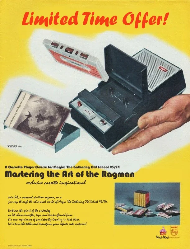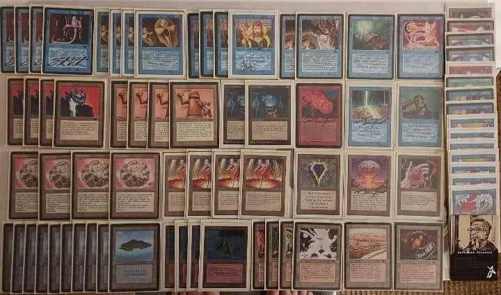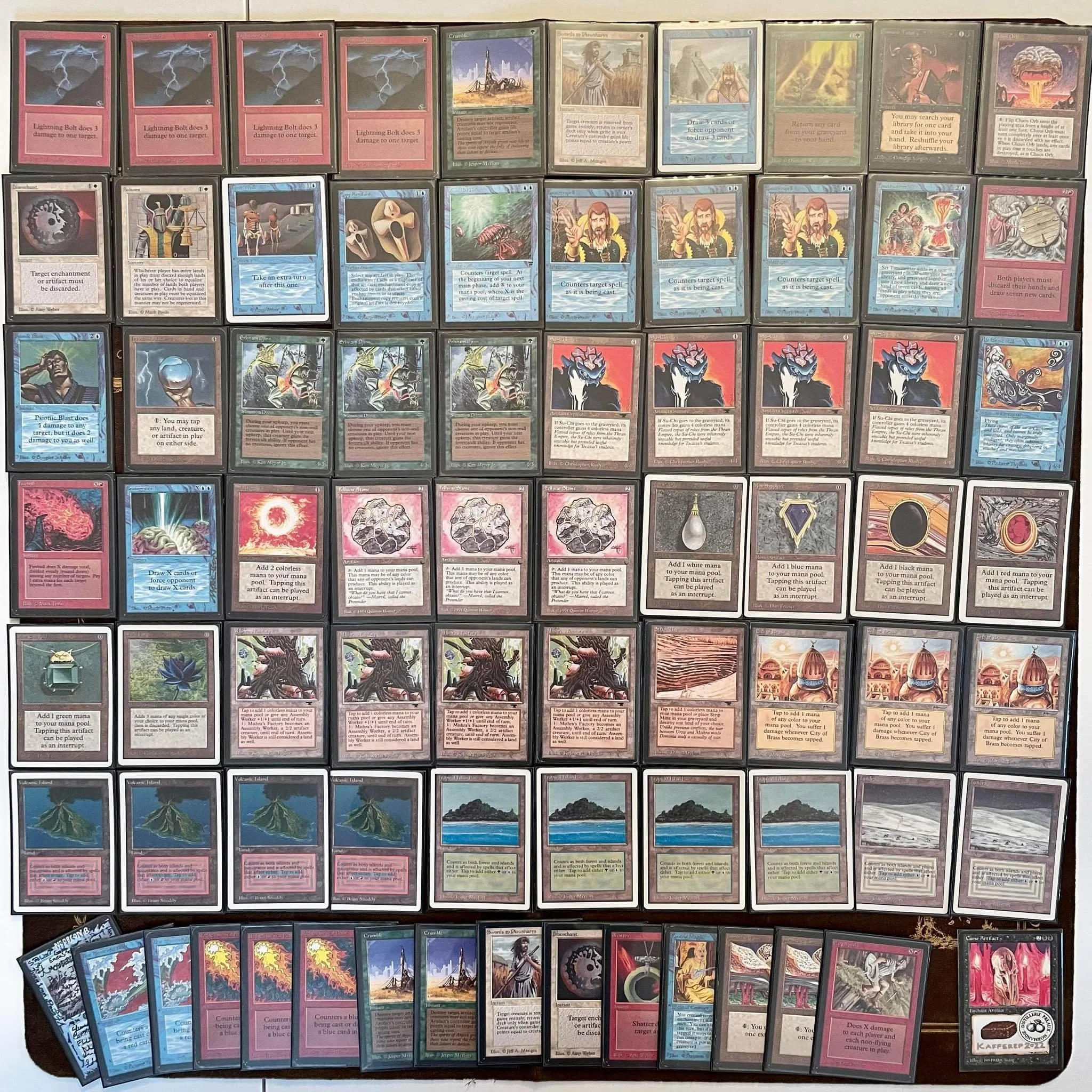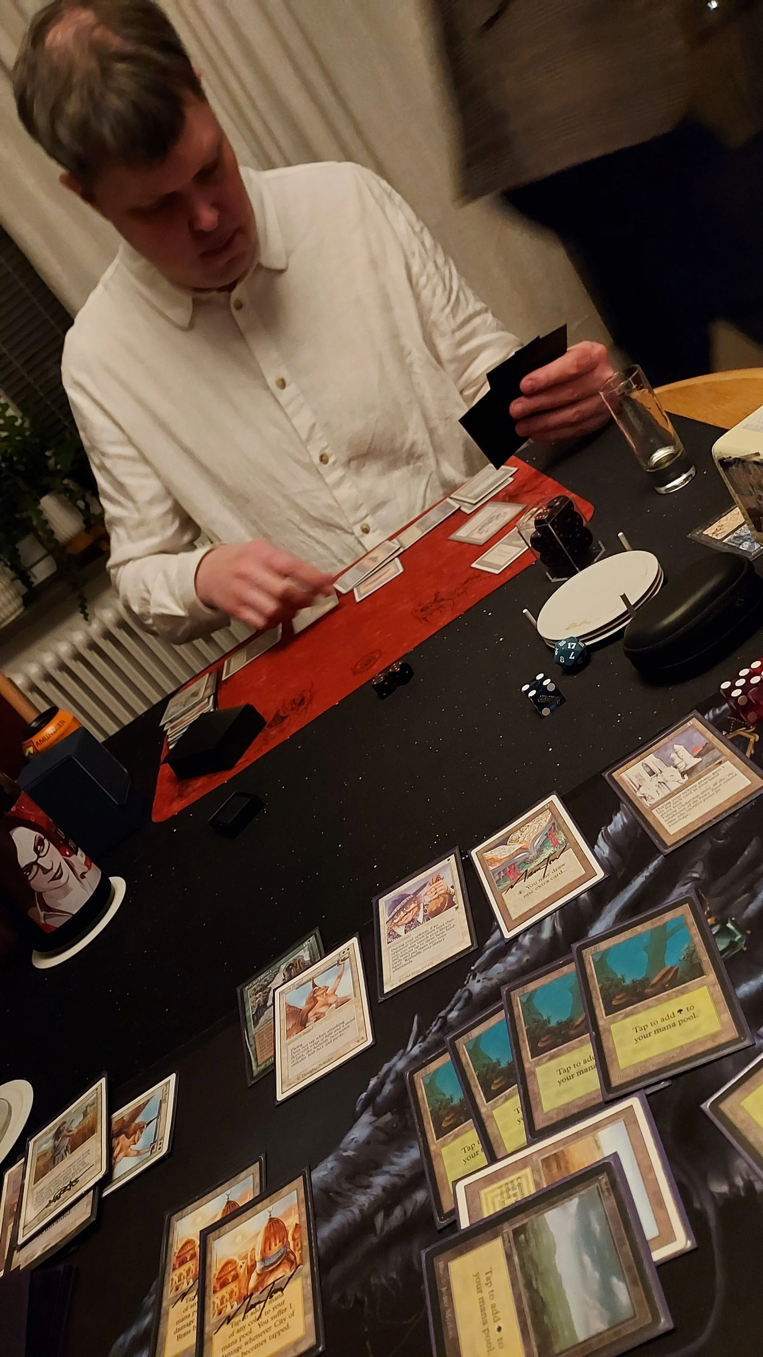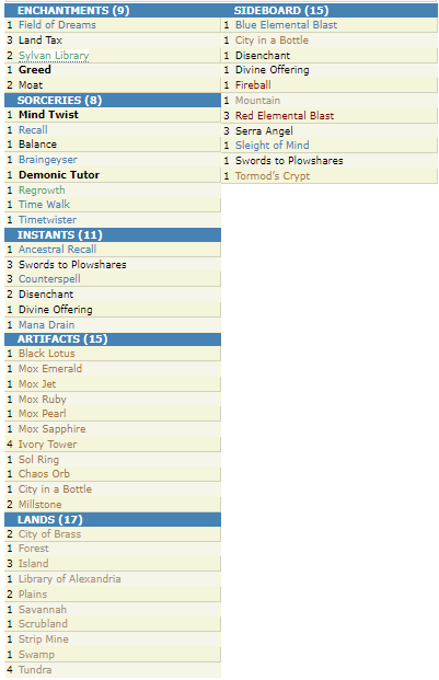 Then, looking at the points, I just wanted to make use of Mana Vaults not being priced basicly. I payed my ten to get 4 Mishras (4p), 1 moxen (2p), 1 Mana Drain (1p), 1 Braingeyser (2p) and my Workshop (1p). I made it all through the group stage and apparently red overperformed and counterspells weren’t as good as I thought, at least back then.