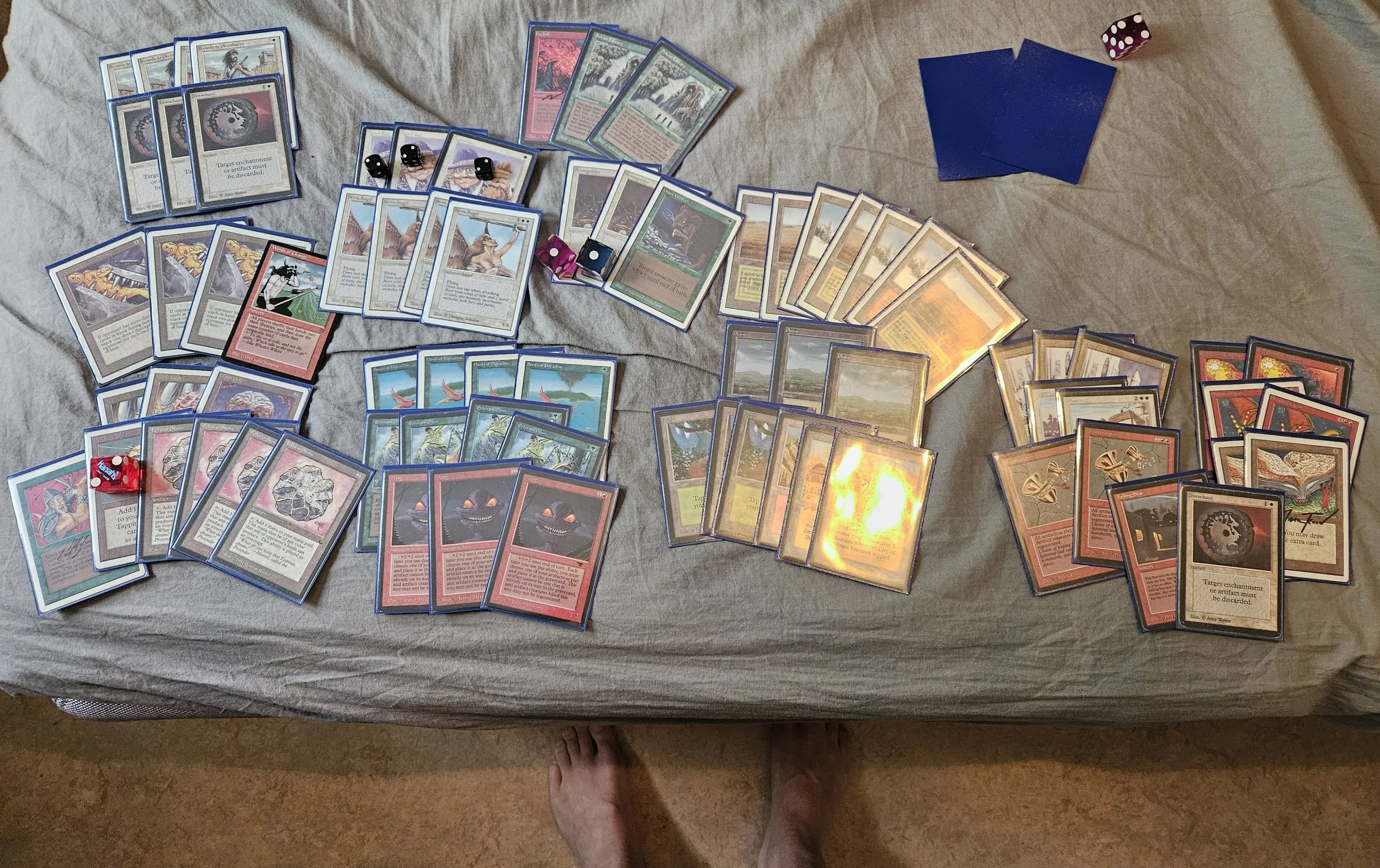 First of I build a boring Blue/white flyers deck with 2 moats thinking they are the free version of WoG. I quickly realised Moxen and Sol Ring shining giving you a early Serra and hopefully letting you untap or, at the very least, giving you a two for one or something playing against a more aggressive deck and dodging Swords. Moat was fine, but I do see why wrath might have a tax on it comparing them. Playing against any sort of enchantment removal just unleashes the creatures waiting to attack. That also goes for the Tax on Abyss and Maze I guess. I did however realize that bottle is still very very good and I can’t stress how good Falling Star seems.